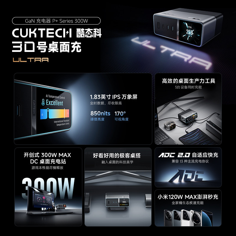 【国家3C认证】CUKTECH酷态科30号超级电能站Ultra电脑手机桌面充电器多功能底座氮化镓快充多口PD插头笔记本