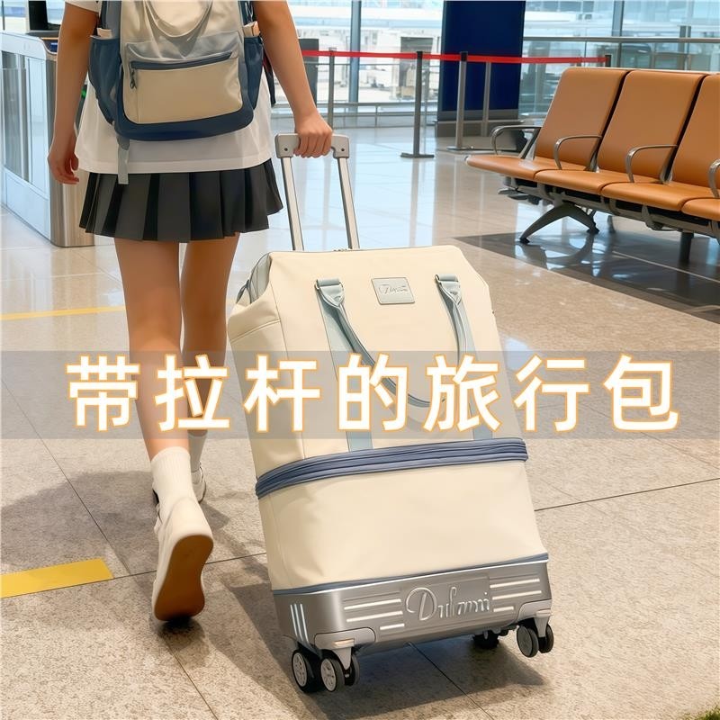 带滑轮行李袋旅行包万向轮行李箱轻便行李包女士大容量拉杆包外出