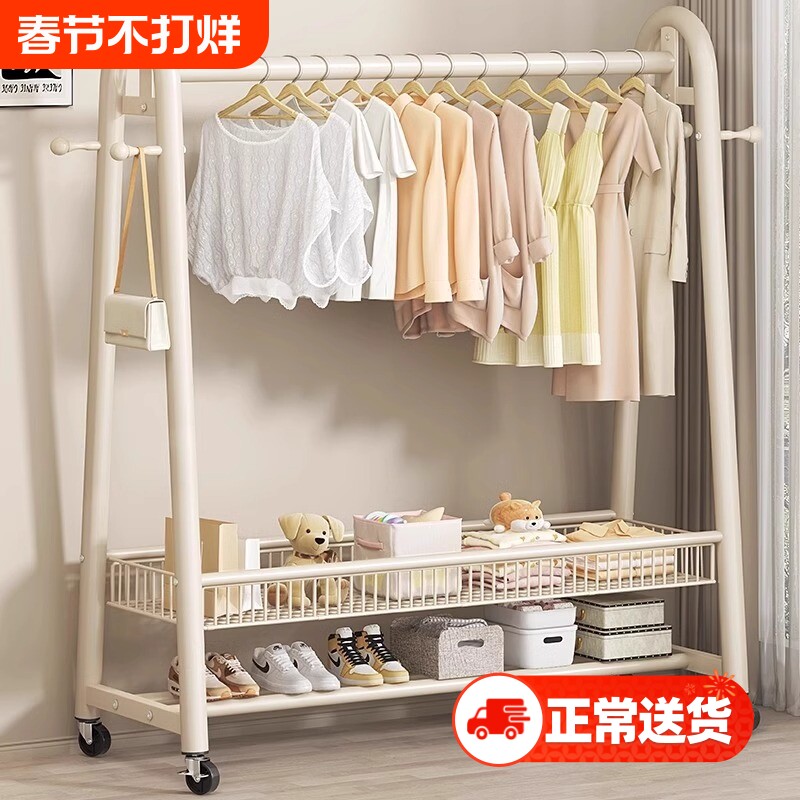 晾衣架落地家用可移动卧室凉衣架阳台挂衣服架子室内简易杆衣帽架