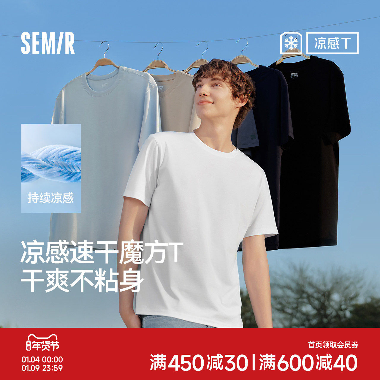 凉感T|森马短袖T恤男吸湿速干抑菌白t2025夏新款纯色百搭上衣遮热