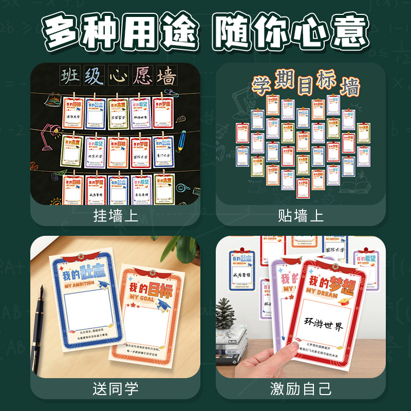 学生新学期目标墙创意学习加油励志卡片悬挂墙贴初高中考班级光荣榜教室黑板报装饰文化墙空白可手写计划愿望