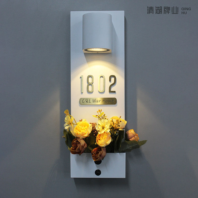 别墅户外门牌创意定制号码牌地址牌商店门口装饰插花温馨牌子入户门高级感家用壁灯感应灯充电茶楼包间门牌
