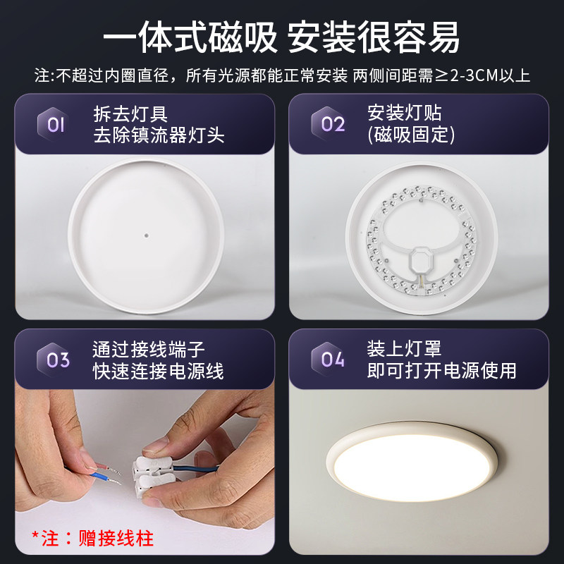 【全网】LED磁吸替换灯芯灯盘三色白光超亮改造模组安装简单