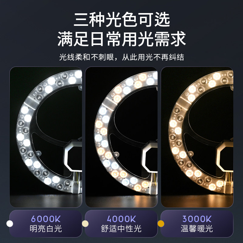 吸顶灯led灯芯圆形替换磁吸灯盘厨房改造灯板灯片灯珠三色光源