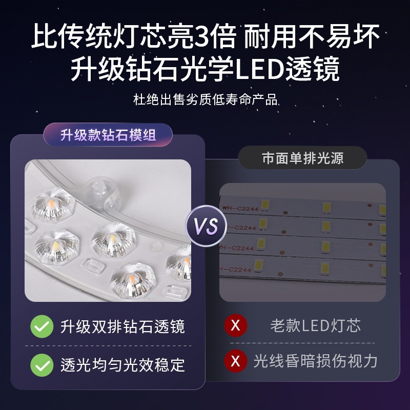 【新款升级】简易安装ed吸顶灯灯芯替换磁吸圆形灯盘暖光客厅灯板