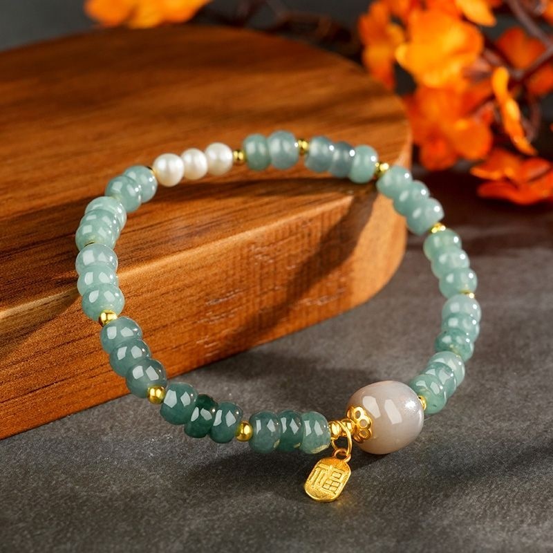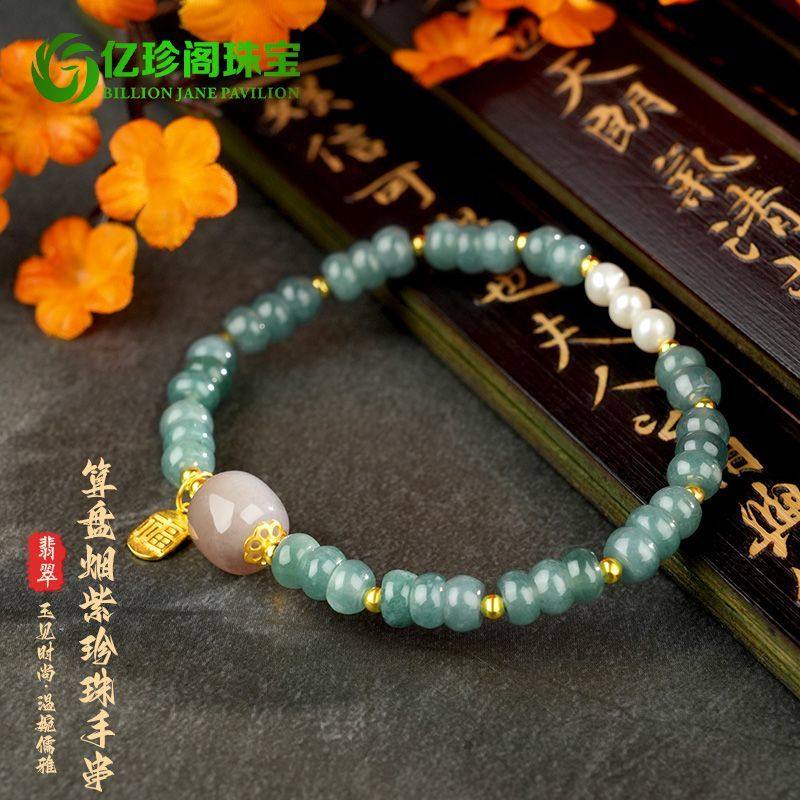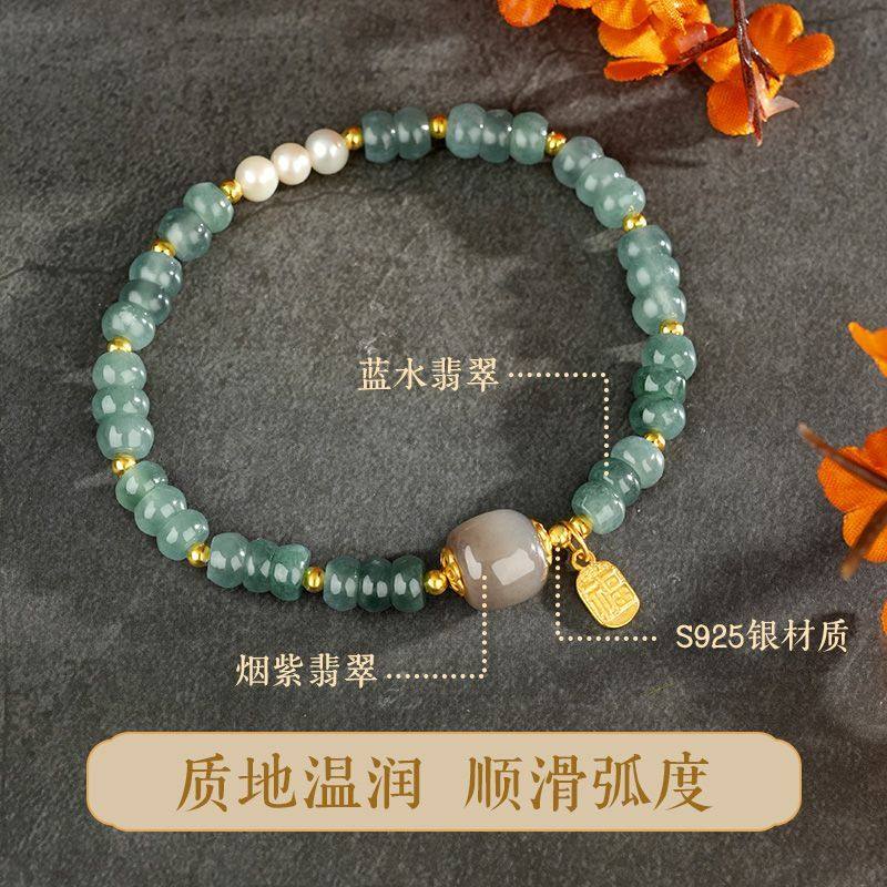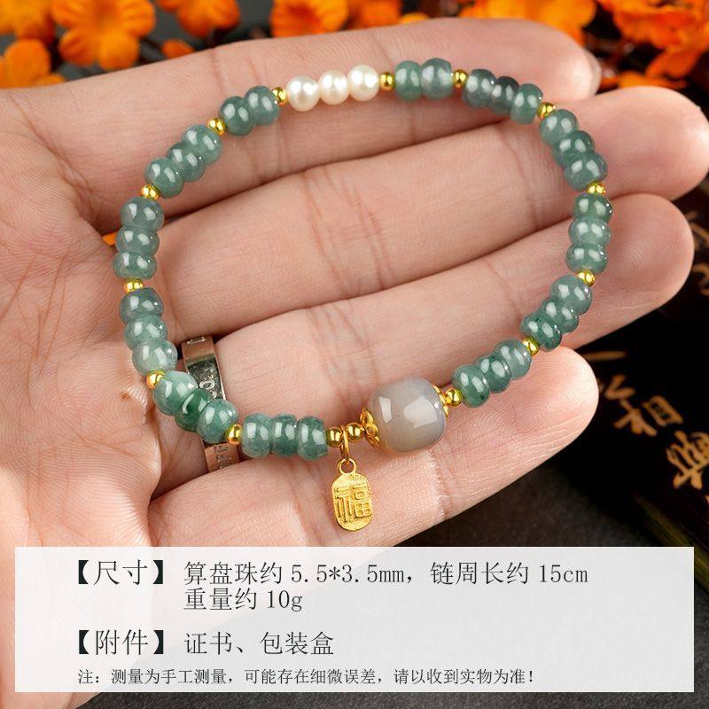 高档a货蓝水翡翠算盘珠手串新中式手链复古手饰新年礼物