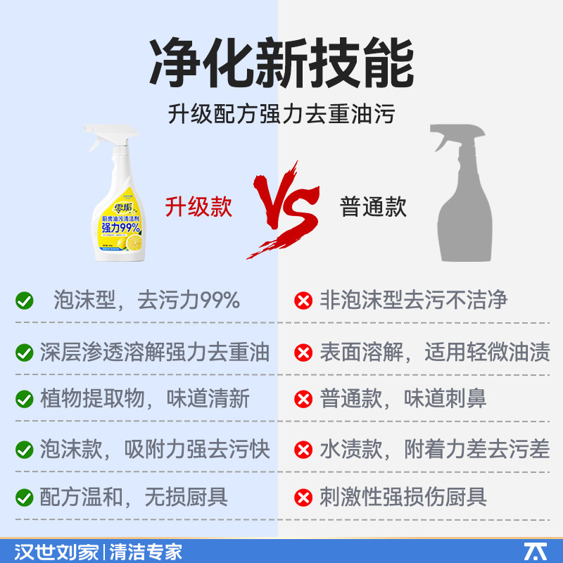 汉世刘家油污净去油污清洁剂家用厨房去油污强力清洁剂油烟机重油