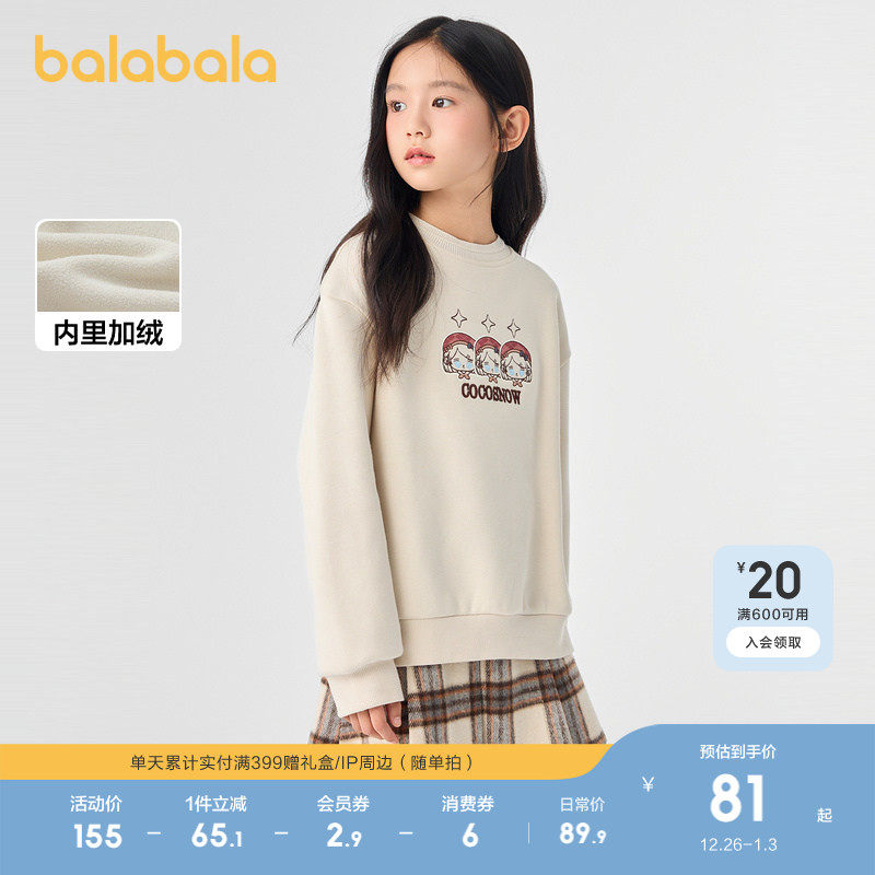 【无雪棉花娃娃IP】巴拉巴拉童装儿童加绒长袖卫衣女童秋冬装百搭