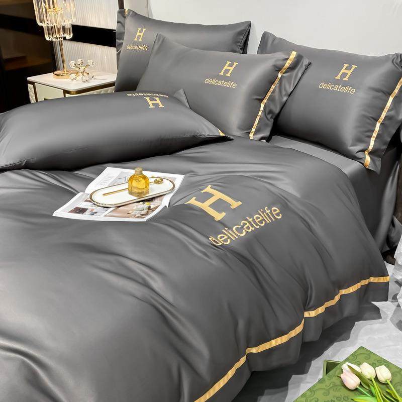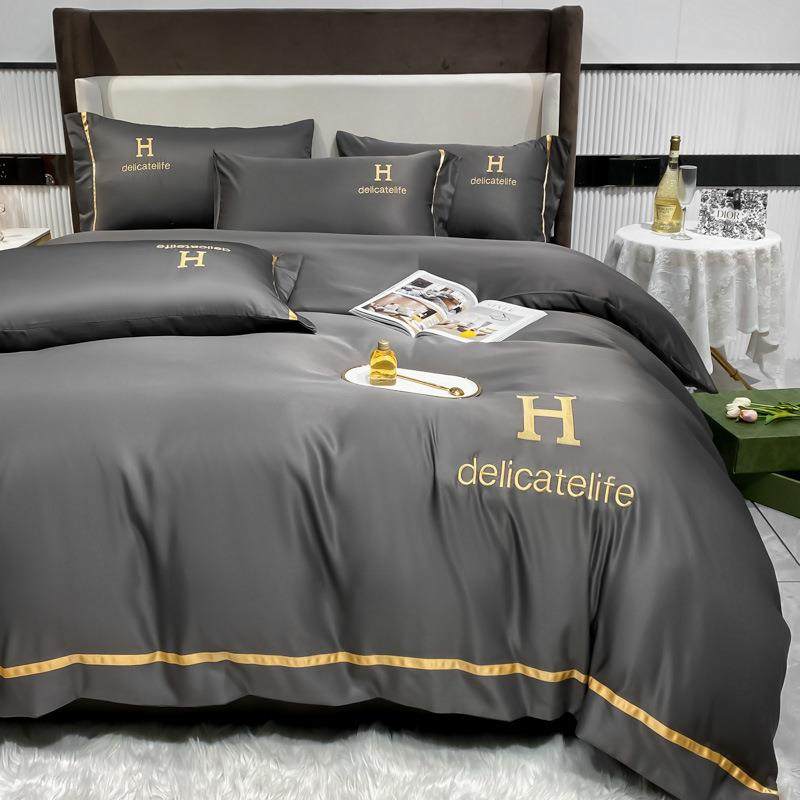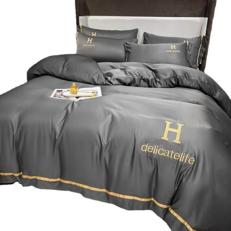 夏季水洗天丝床上四件套冰丝被套高档床笠床单床品绣花纯