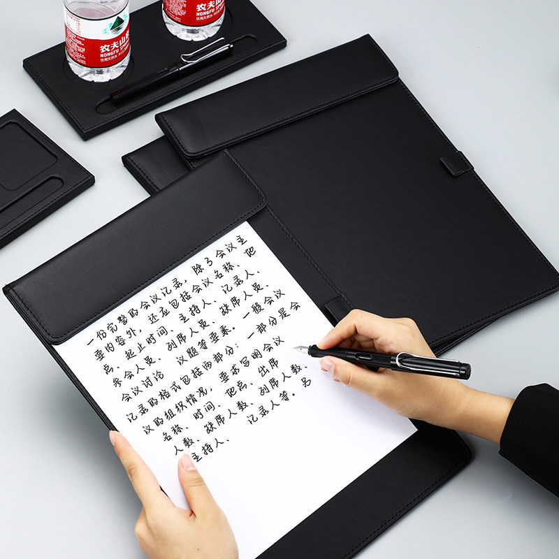 A4会议垫板夹磁性文件夹写字垫板酒店会议桌垫板皮质书写板夹高档酒店便签夹办公报告夹水杯托垫子可定制LOGO
