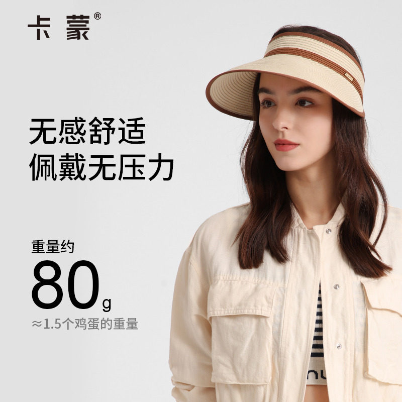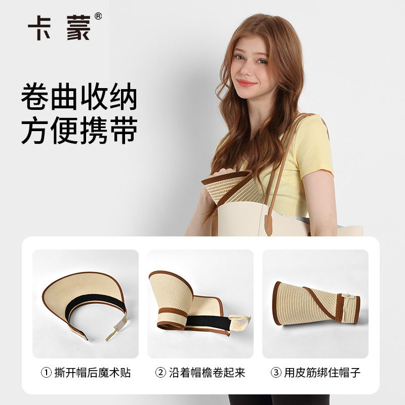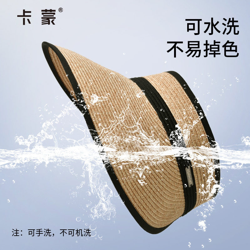 卡蒙贵妇空顶防晒帽女夏防紫外线草帽户外遮阳太阳帽可折叠蛋卷帽