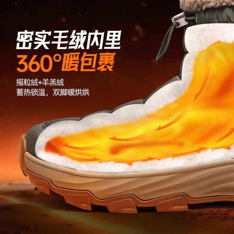 悍途加绒保暖棉鞋男士新款冬季厚底加厚防水男鞋东北运动雪地靴女
