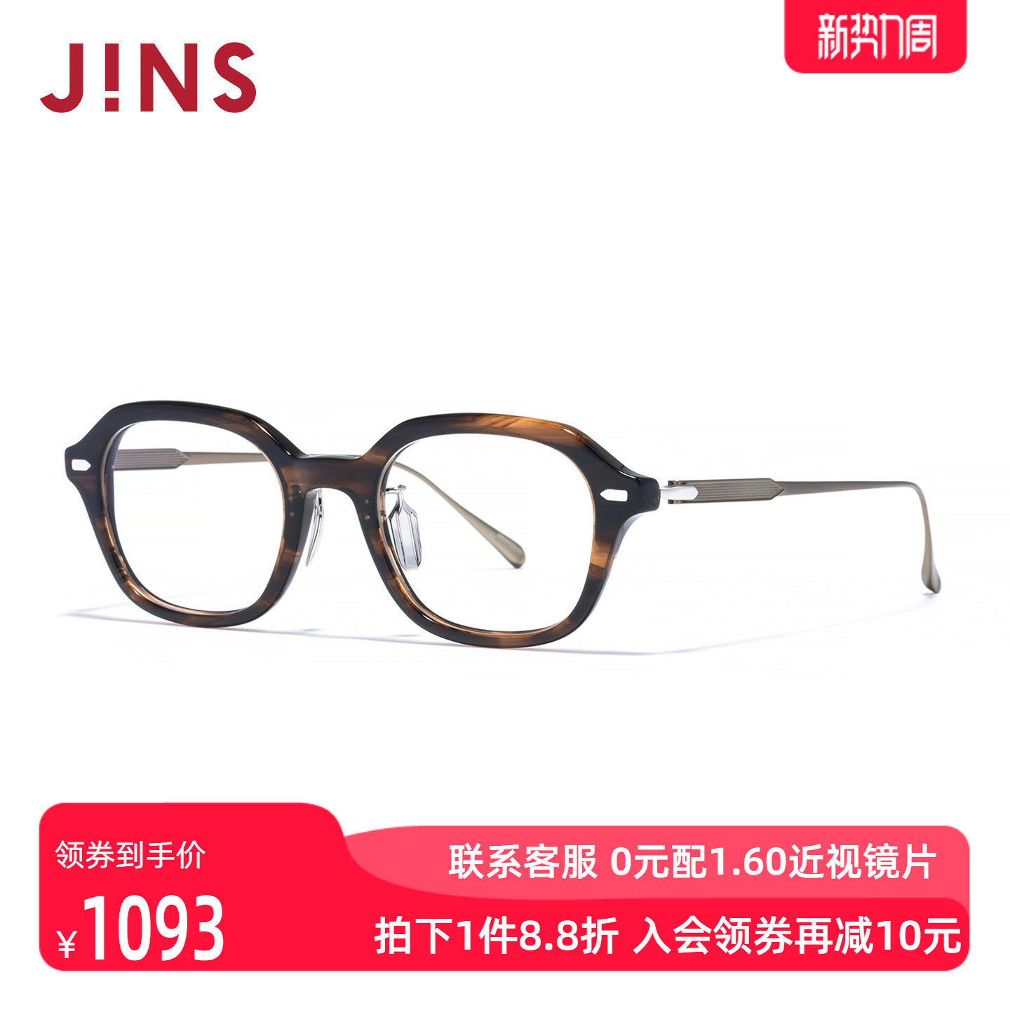 JINS睛姿近视镜CLASSIC复古板材框可加配防蓝光镜片UCF25A229