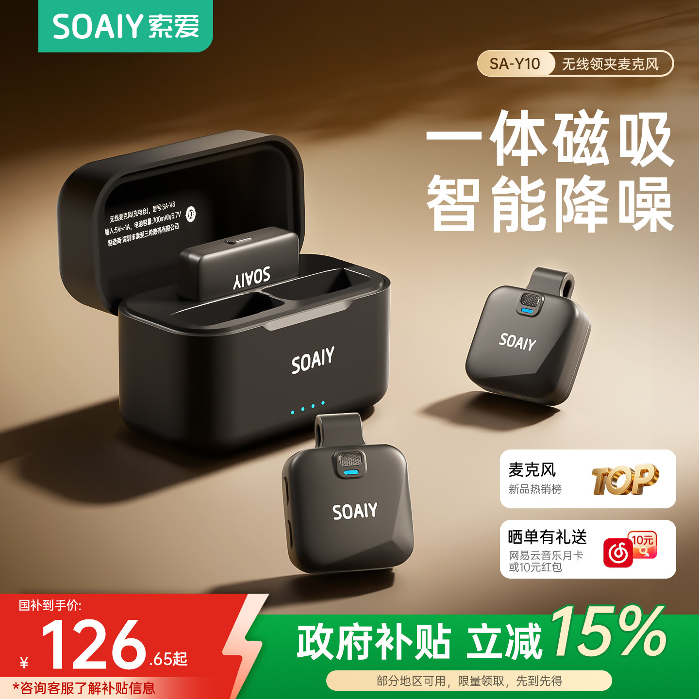 索爱V8无线直播麦克风领夹式收音麦主播录音VLOG降噪手机电脑专用