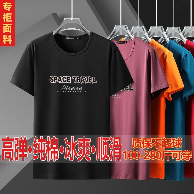 加肥加大码男短袖t恤 宽松纯棉弹力半袖肥佬胖子潮牌体恤打底衫夏