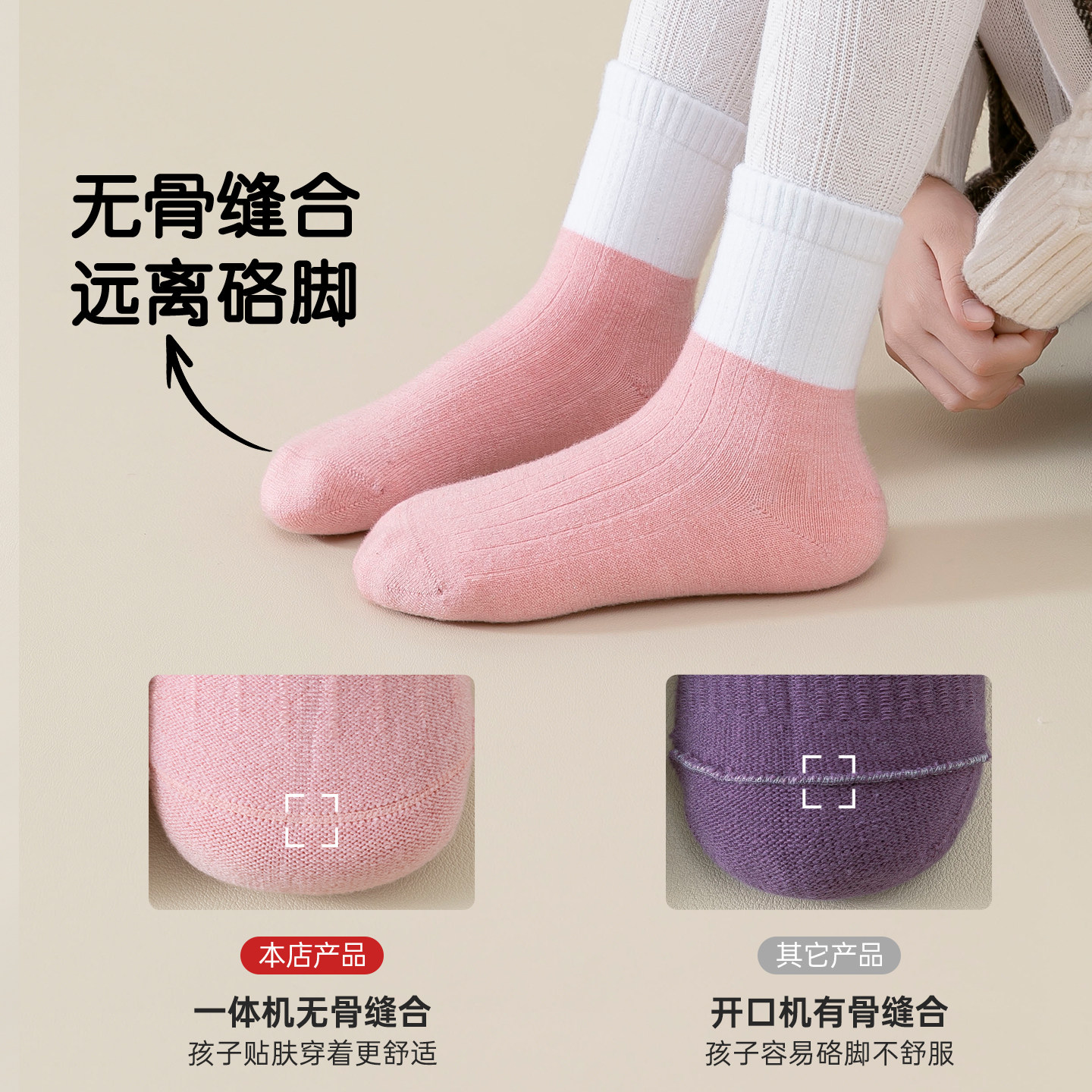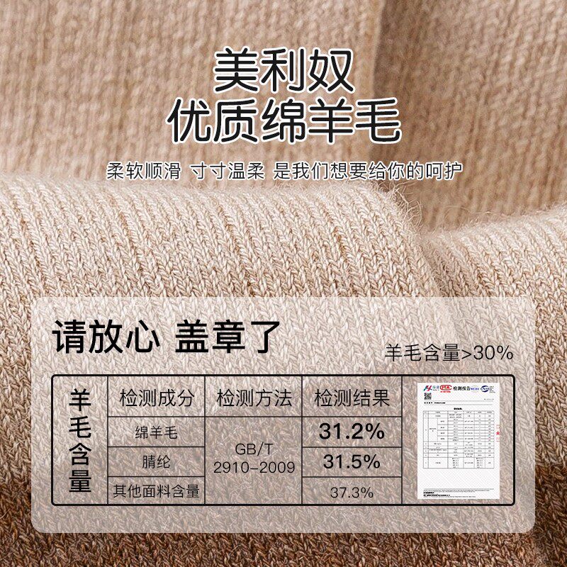 美利奴绵羊毛袜冬季女童袜子无骨抗菌防臭女孩高筒柔软透气保暖袜