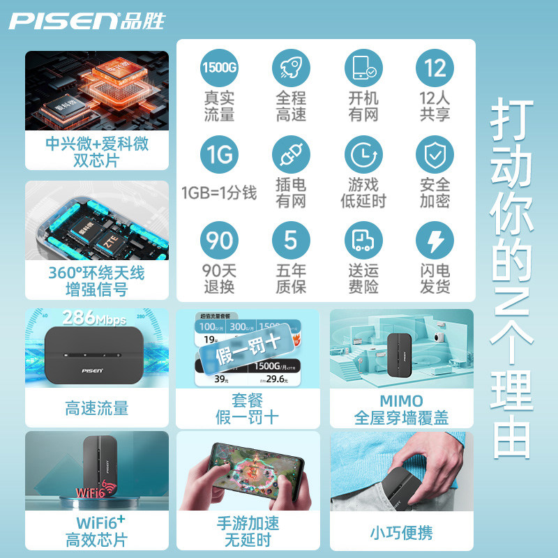 品胜网络随身wifi2025新款移动无线wifi便携式4G无限速流量全国通用网络家用路由器wi-fi车载上网卡便携wifi