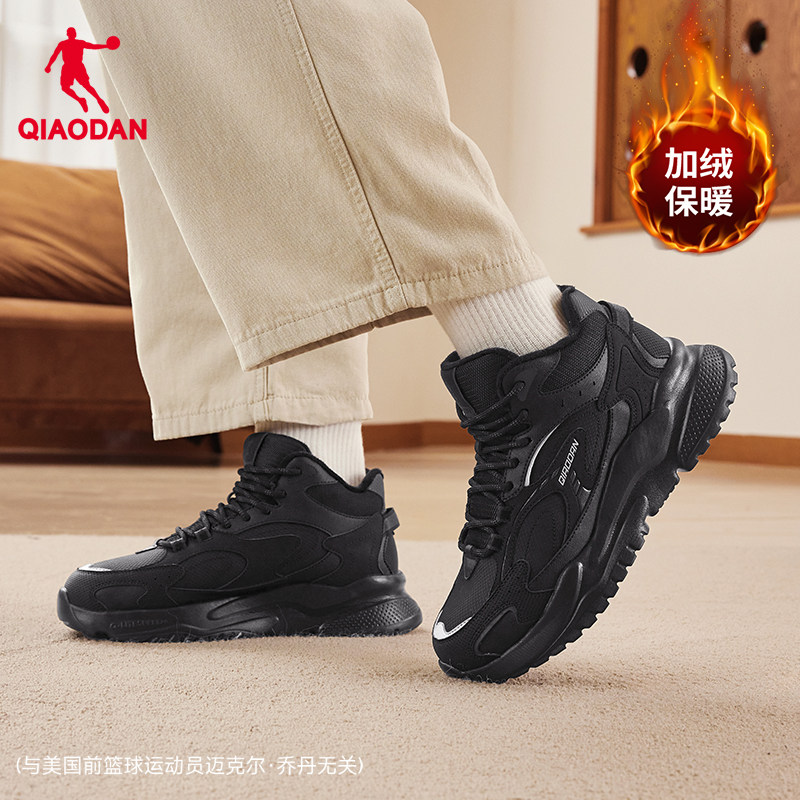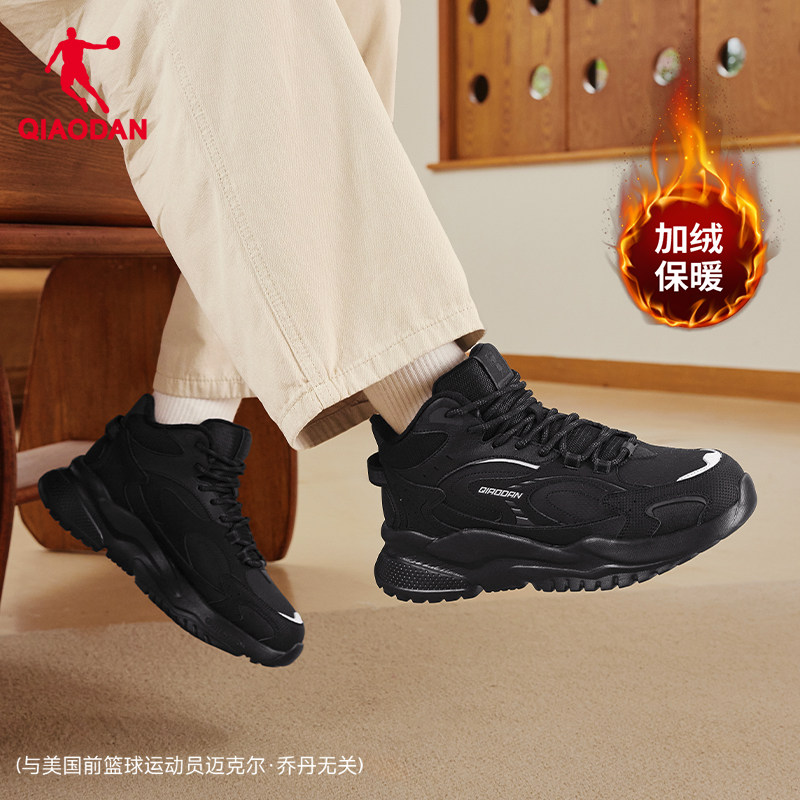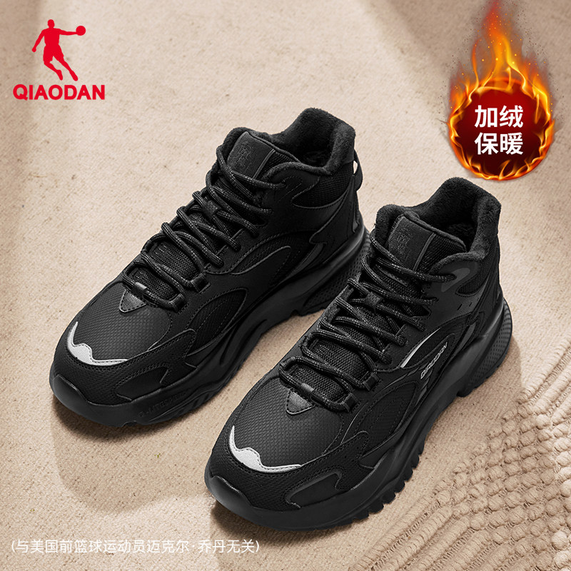 乔丹加绒休闲鞋高帮大棉鞋保暖运动鞋男士新款黑雪地靴老爹鞋棉鞋