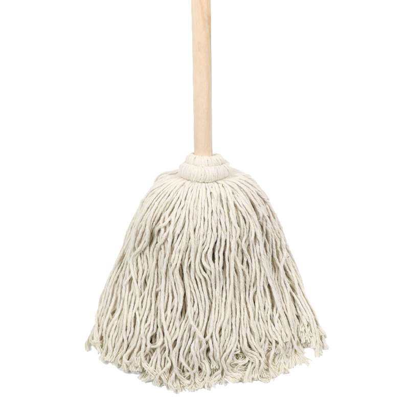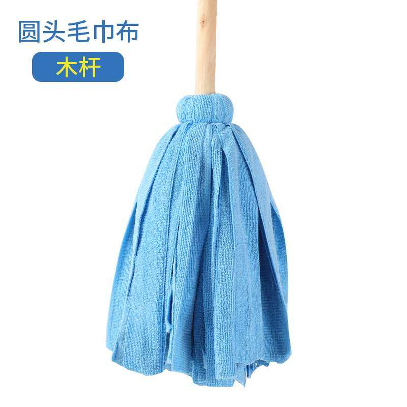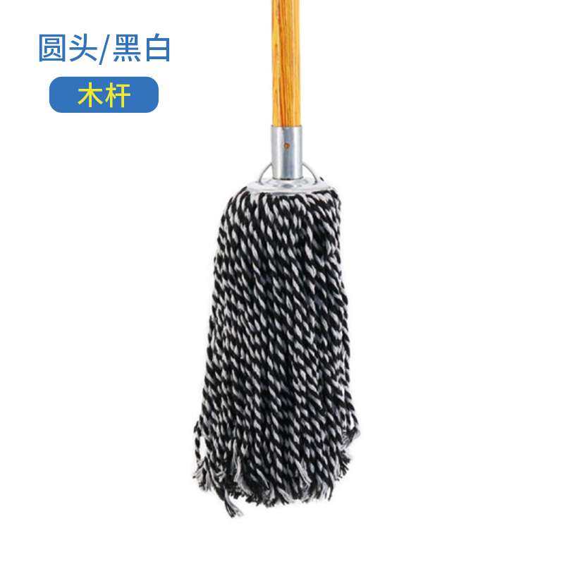 KE3C老式拖把木杆棉线圆头墩布毛巾布酒店工厂公司保洁木把柄
