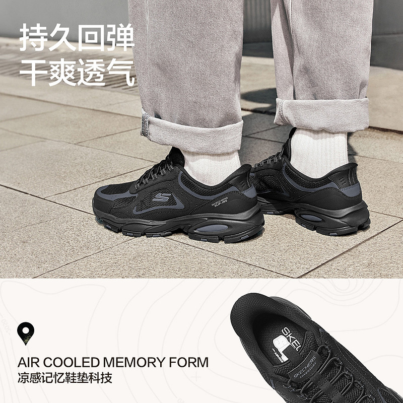 斯凯奇官方 男士户外徒步鞋抓地耐磨一秒闪穿舒适登山鞋