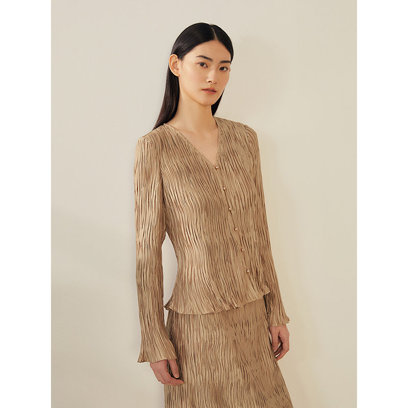 YINER音儿专选2025春季新款法式优雅褶艺衬衫美拉德肌理感轻上衣
