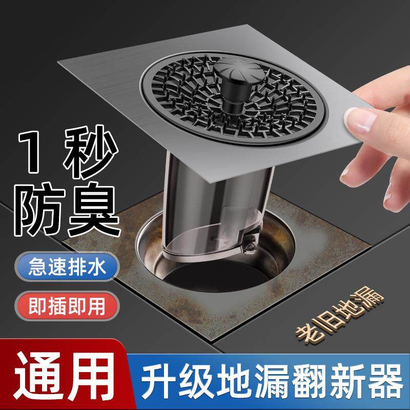 304不锈钢浴室封口盖卫生间防臭过滤网免拆地漏翻新贴排水方形