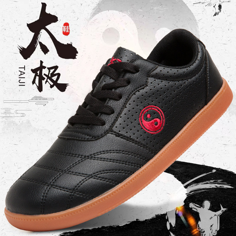 武士龙太极鞋女真皮牛筋底春秋男款武术鞋八段锦太极拳练功运动鞋