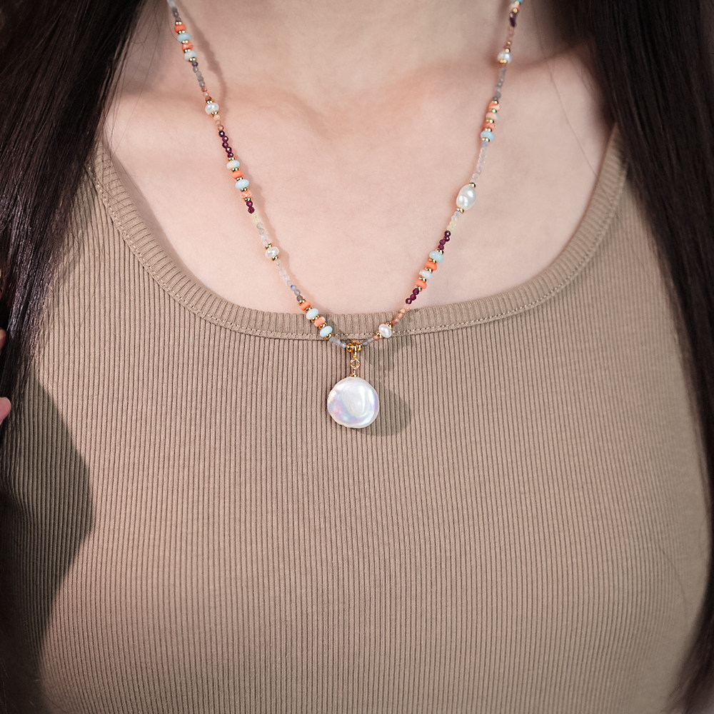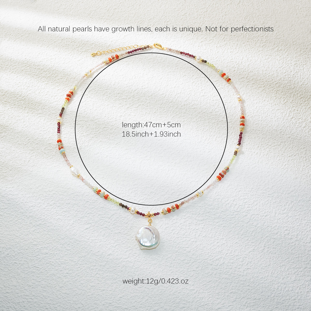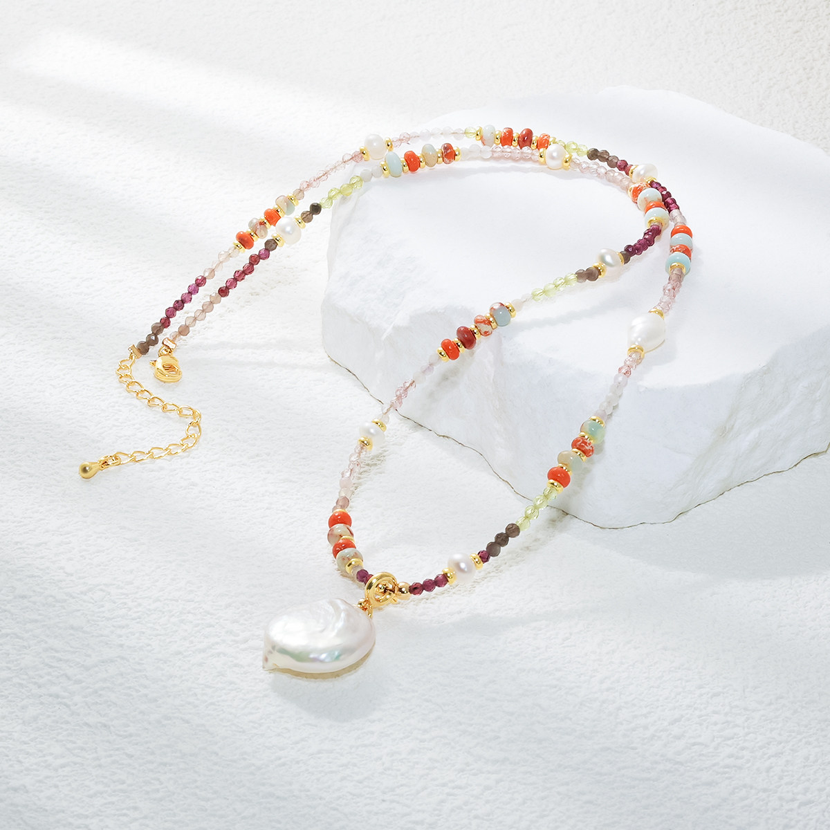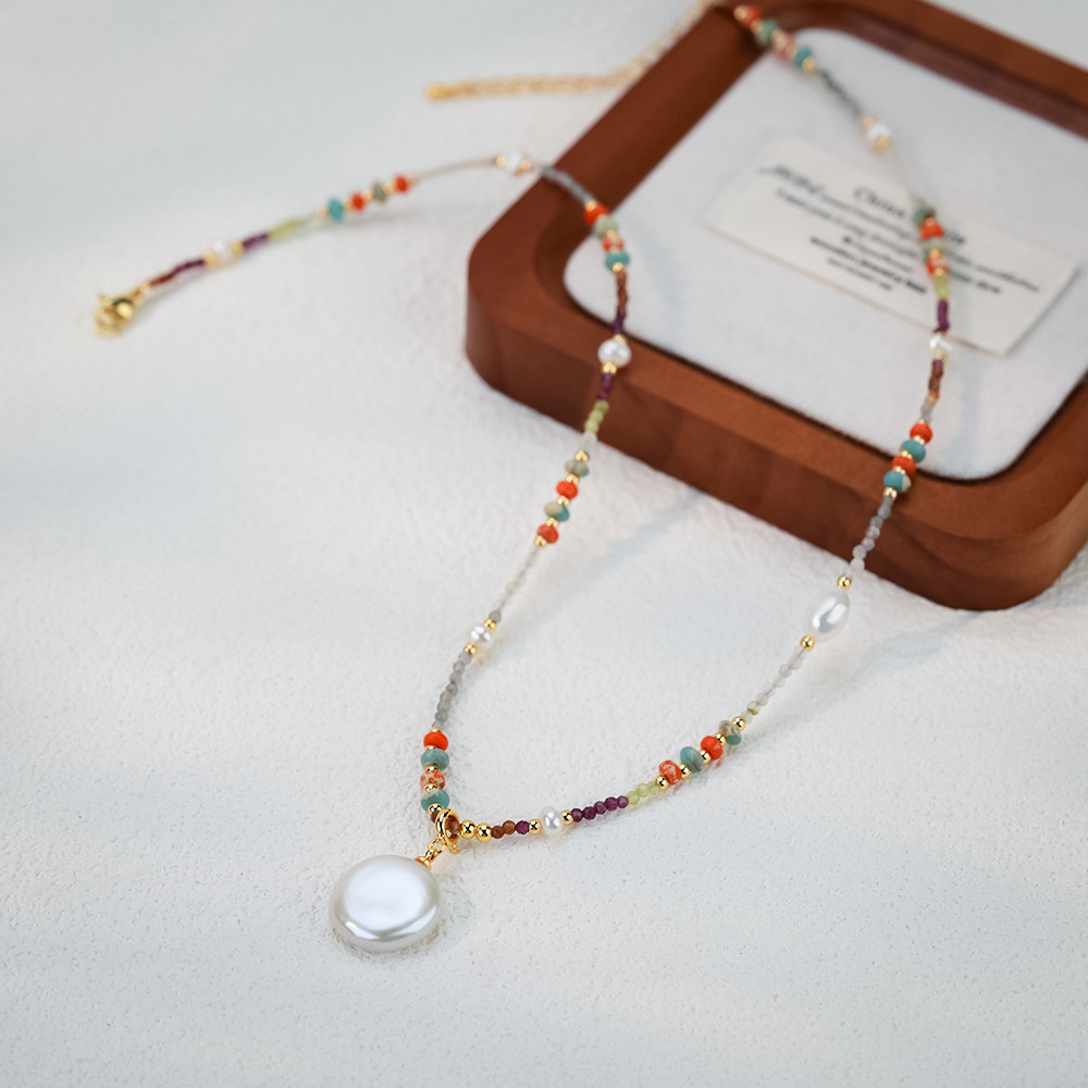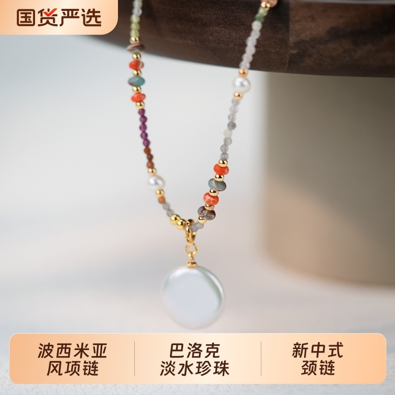 巴洛克淡水珍珠彩色天然石串珠项链新中式国风精致时尚饰品