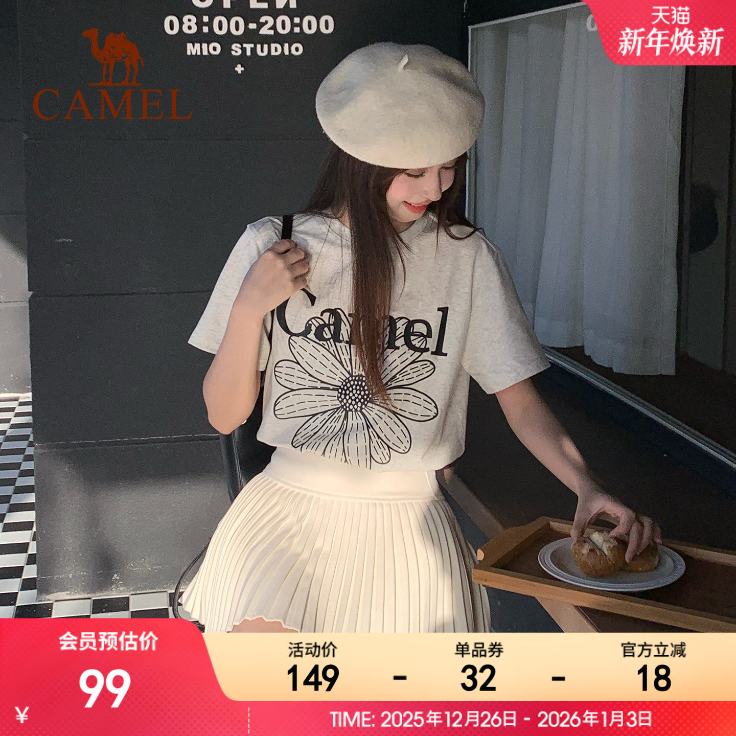 冰感T神骆驼短袖T恤半袖正肩小个子韩系小雏菊夏季新款棉感上衣女