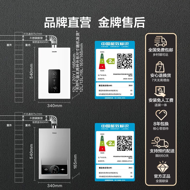 海尔出品统帅官方燃气热水器天然气液化气煤气家用12L洗澡恒温LS1
