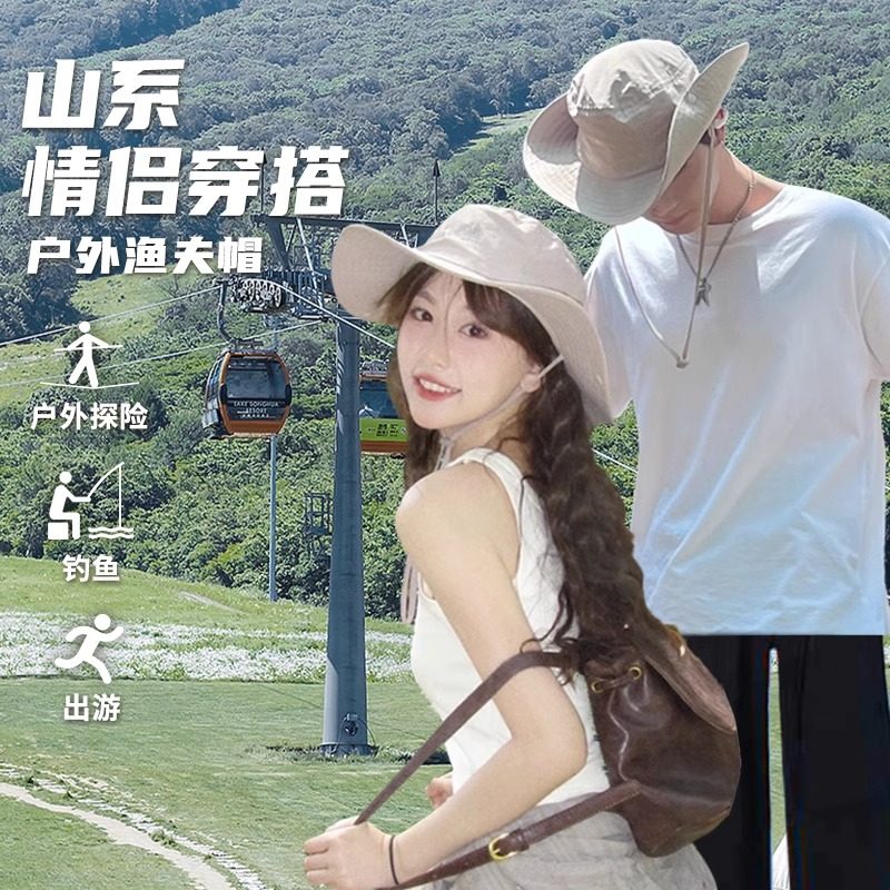 西部牛仔帽男渔夫帽女爬山沙漠防晒帽户外露营遮阳帽子徒步登山帽