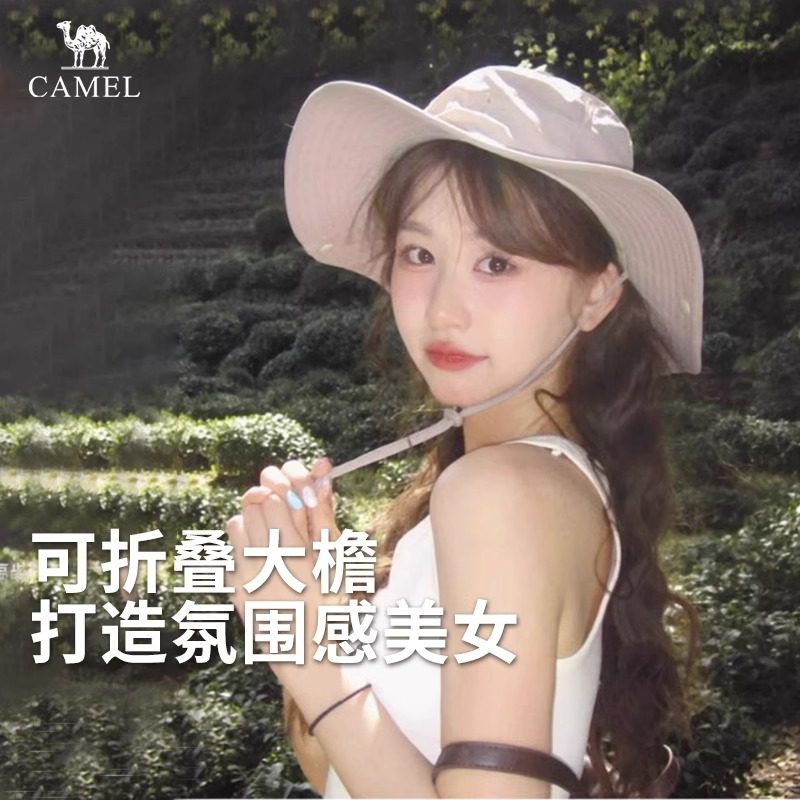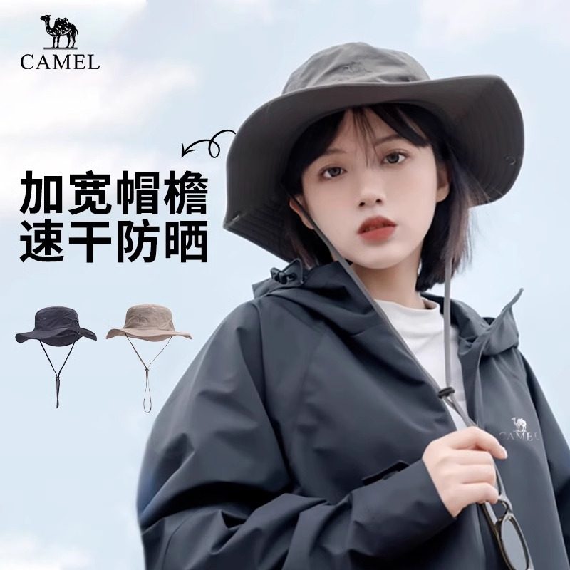 骆驼户外防晒渔夫帽女2025夏季遮阳帽登山沙滩太阳钓鱼牛仔帽
