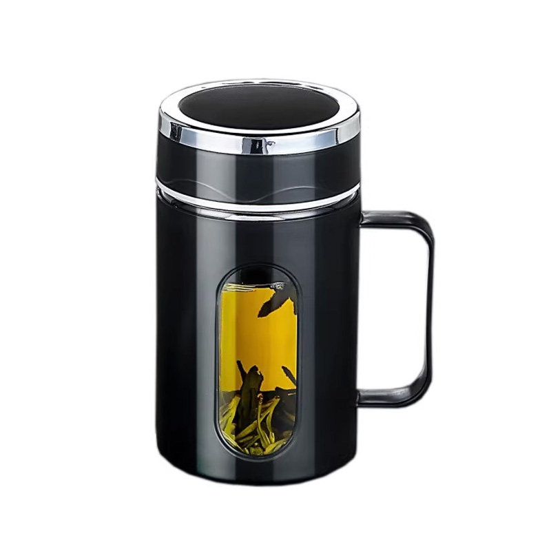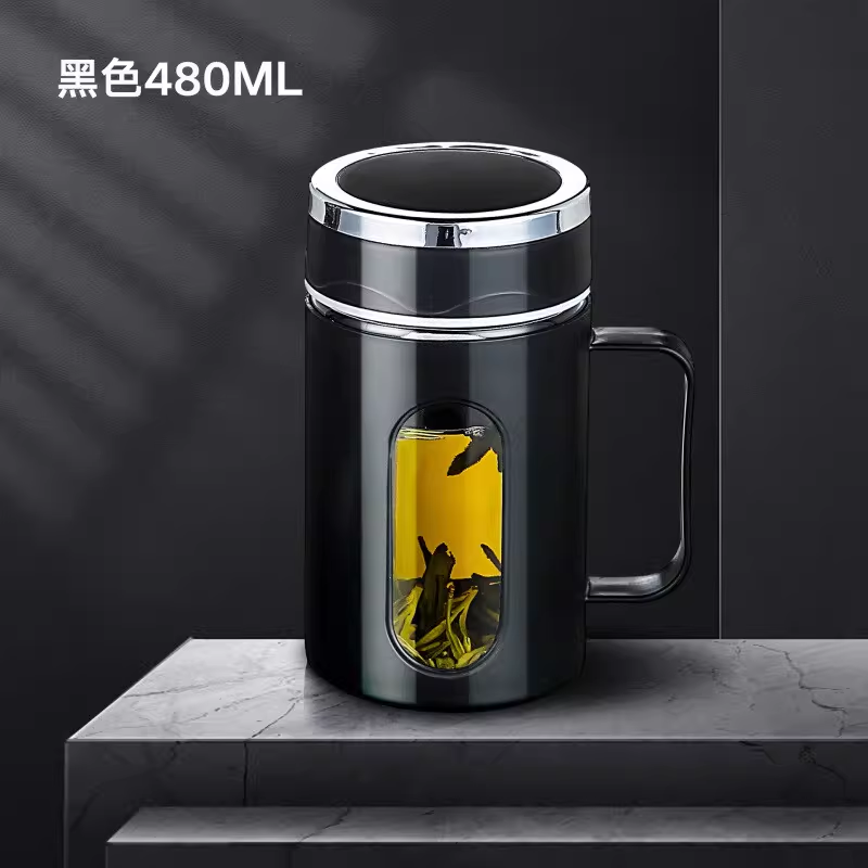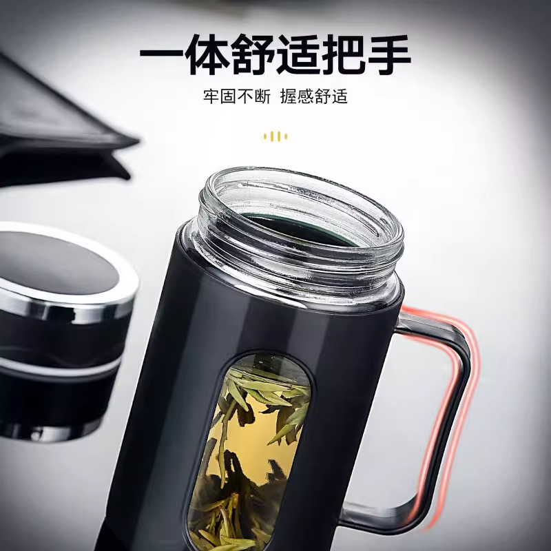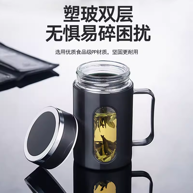 茶水分离泡茶杯塑玻水杯商务玻璃杯双层隔热把手杯子