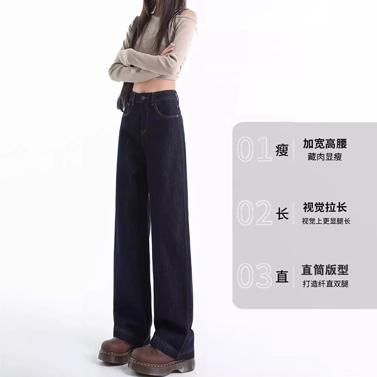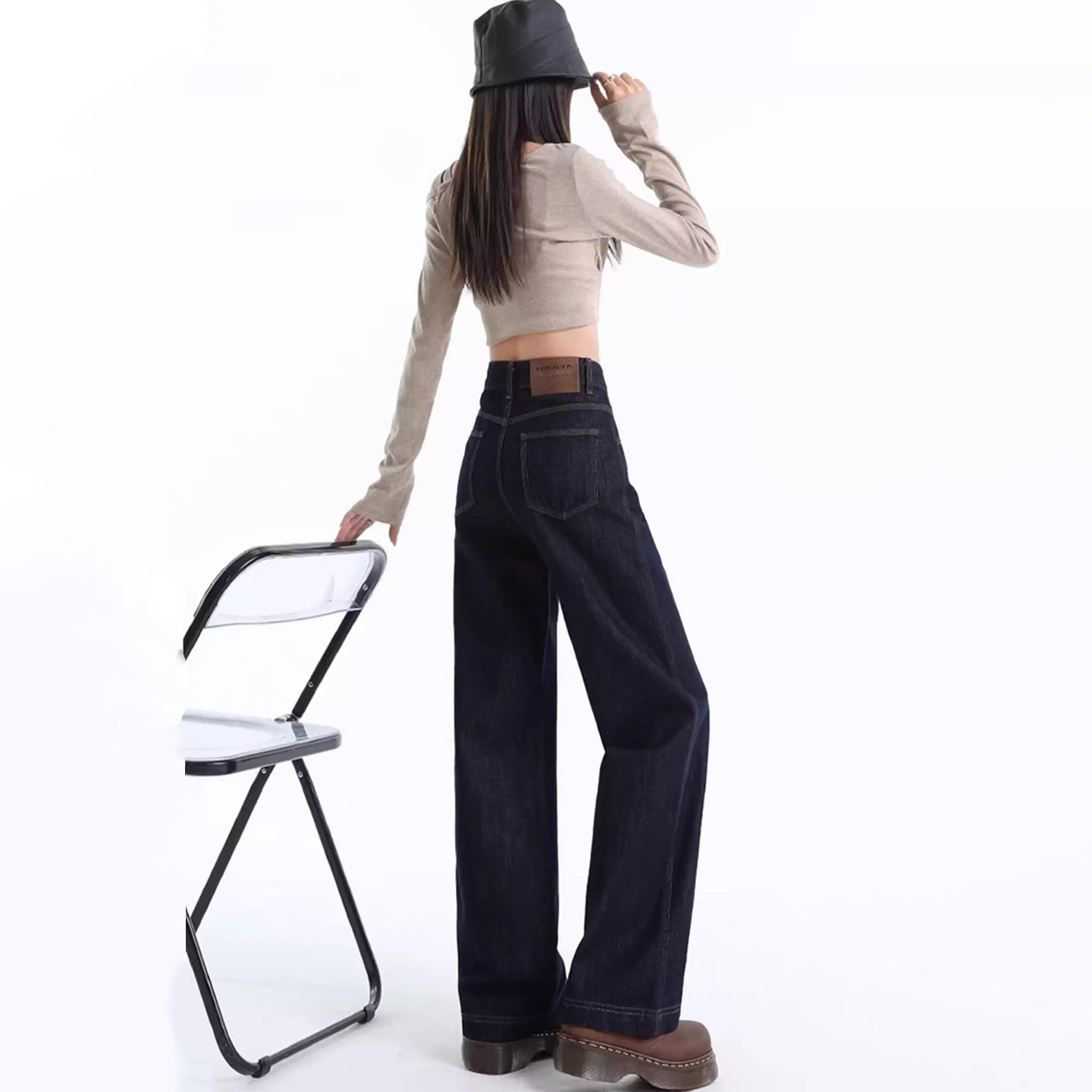 艾恩晟 2025早春美式宽松垂感牛仔阔腿裤深蓝色系慵懒风ins博主风