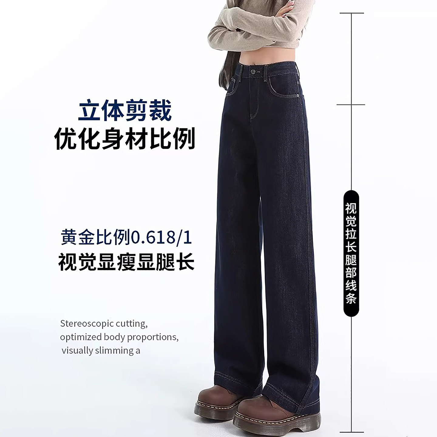 KP真维斯宁丹蓝色直筒牛仔裤女款2025秋冬季小个子高腰窄版拖地裤