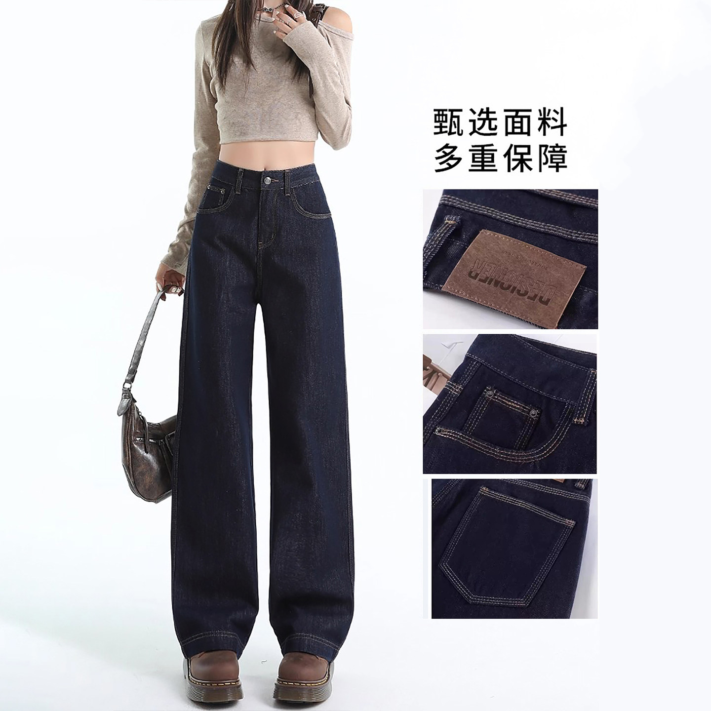店主 自留款推荐~浅色加绒窄版直筒牛仔裤女秋冬宽松高腰阔腿裤