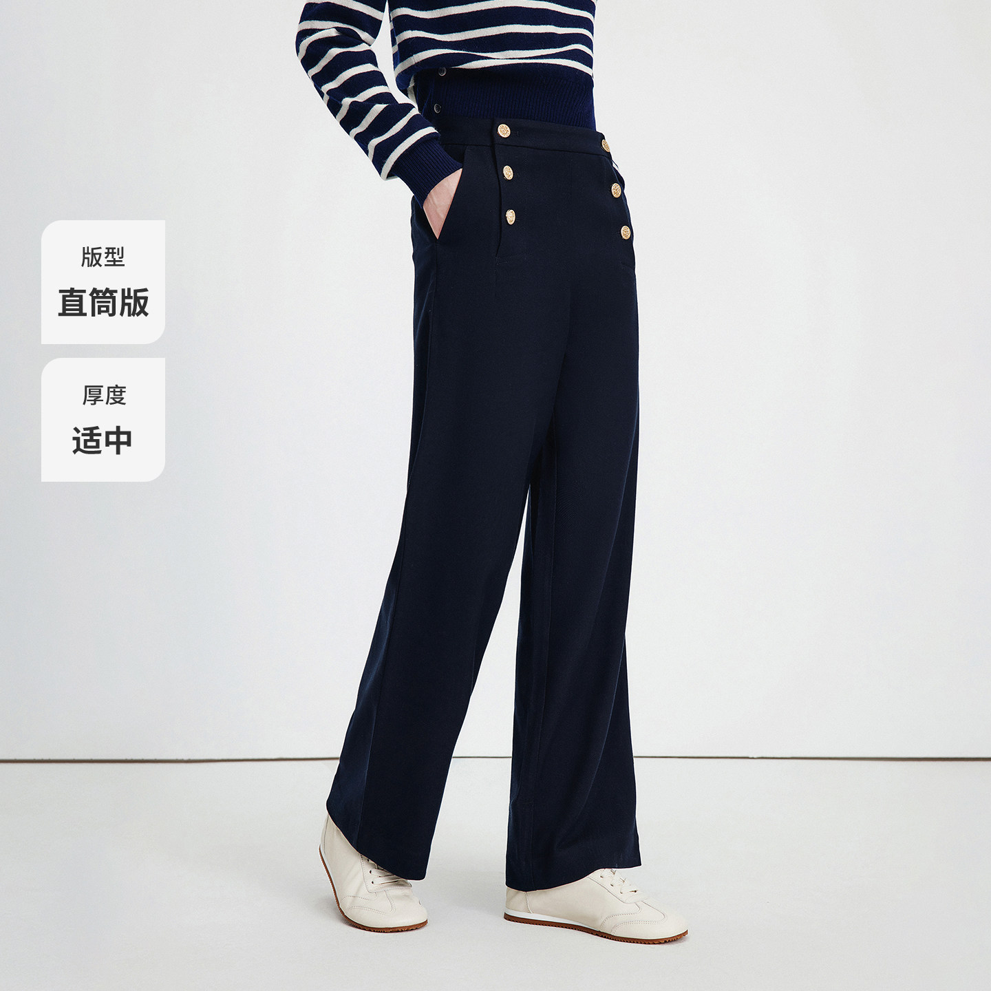 Navigare意大利小帆船高腰百搭休闲裤女25秋冬新款通勤羊毛直筒裤