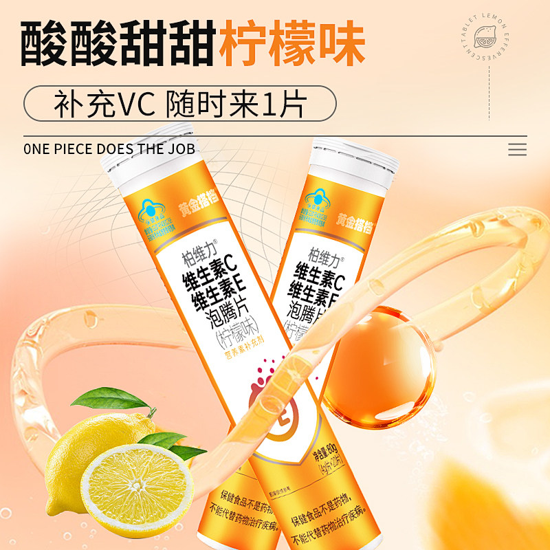 黄金搭档维c泡腾片vcE柠檬电解质饮料孕妇正品官方旗舰店维生素
