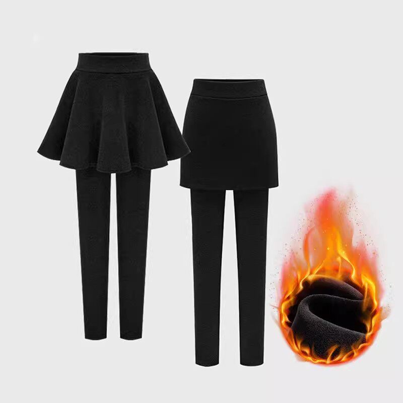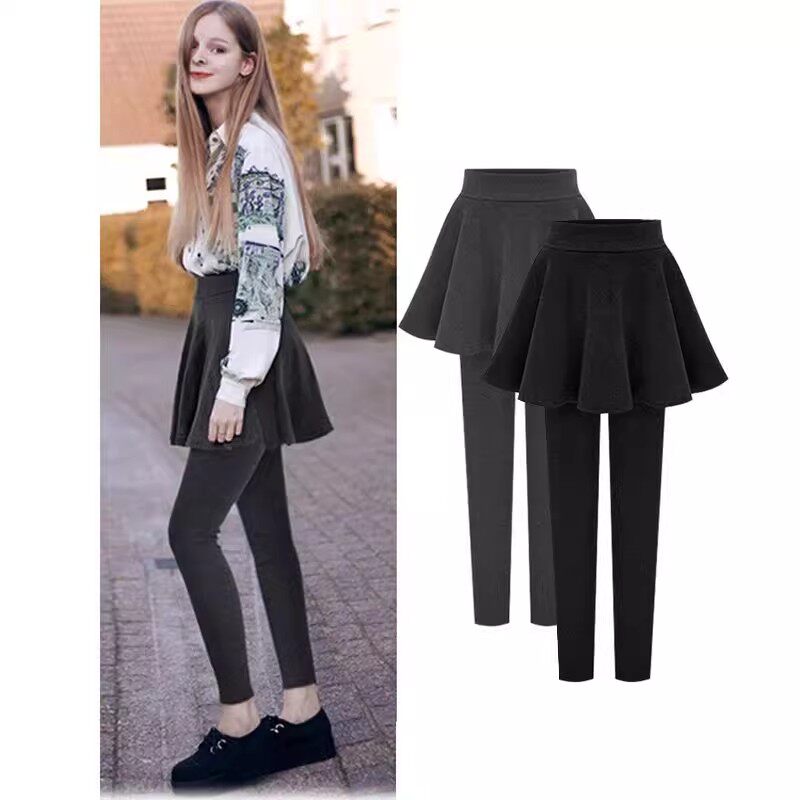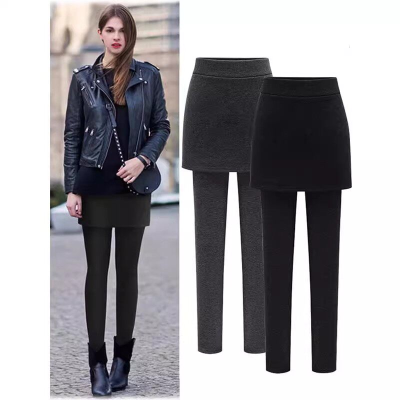 加绒打底裤女外穿假两件包臀裙秋冬大码胖mm加厚保暖小脚紧身裤裙