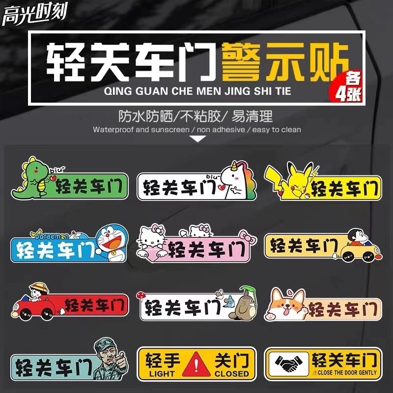 请轻关车门提示贴轻点汽车关车门标语警示车内卡通创意个性车贴纸