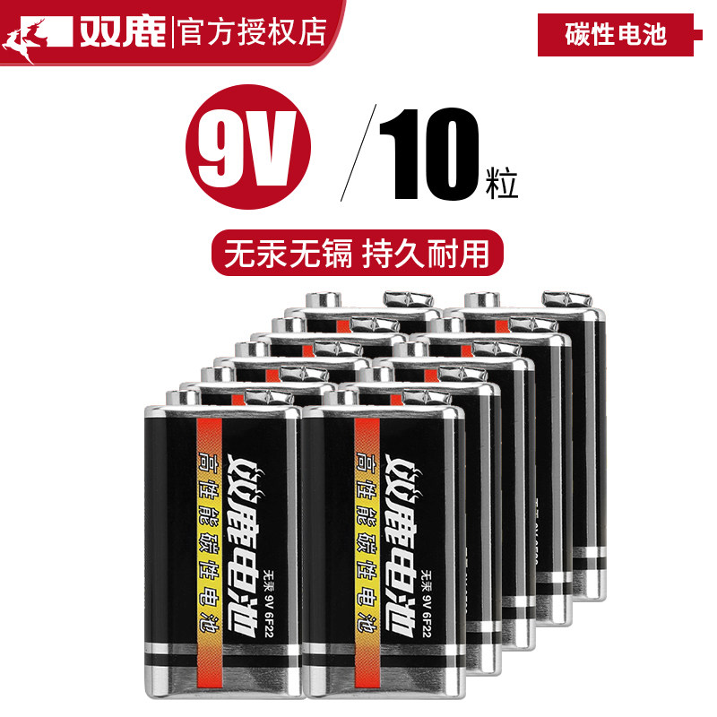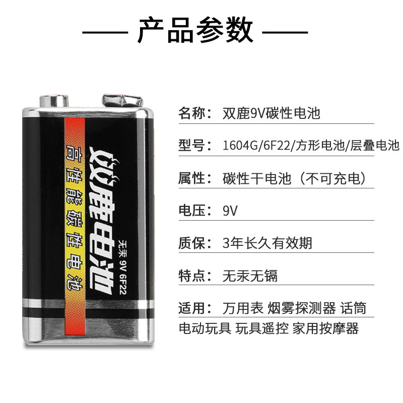双鹿9v电池方块6F22碳性万用表话筒玩具遥控器体温枪叠层九伏电池
