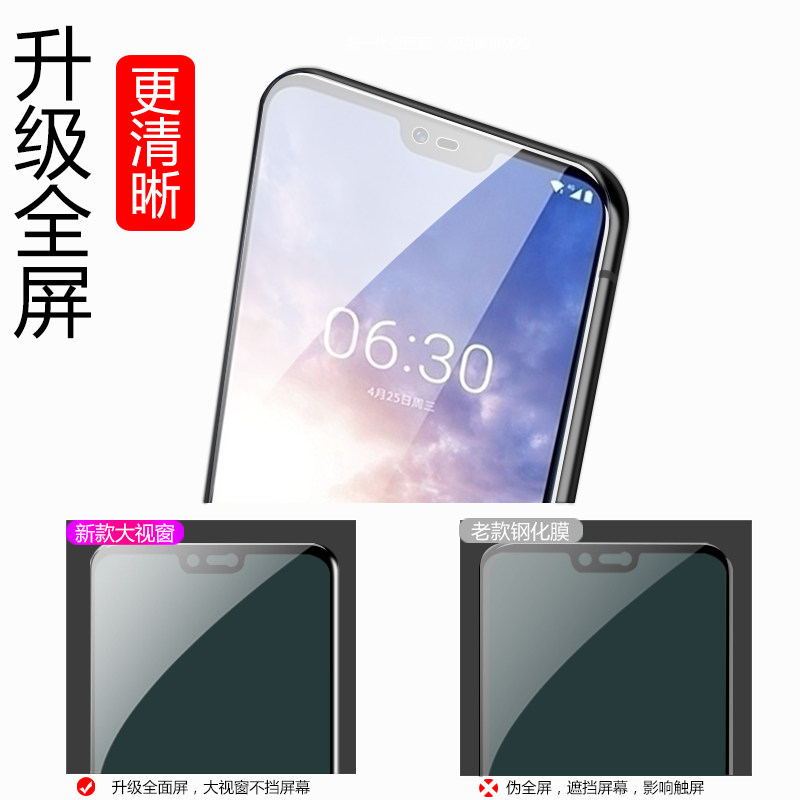 适用于诺基亚X5钢化膜x6全屏覆盖nokiax7弧边5.1plus防摔爆6.1plus玻璃膜钢化X71无白边2018保护手机贴膜全包