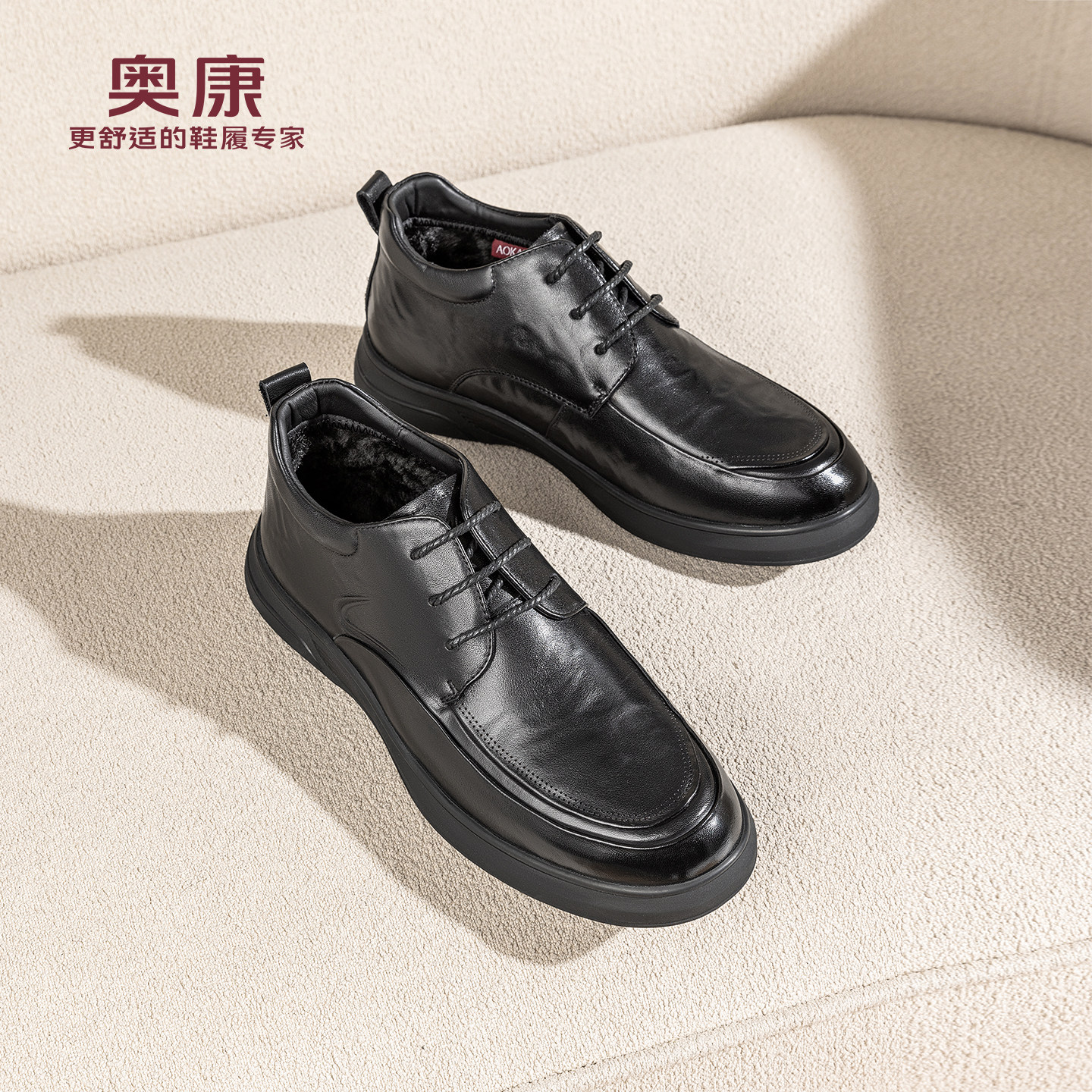 奥康 男鞋2025冬季德比鞋正装商务通勤工作加绒系带皮鞋门店发货