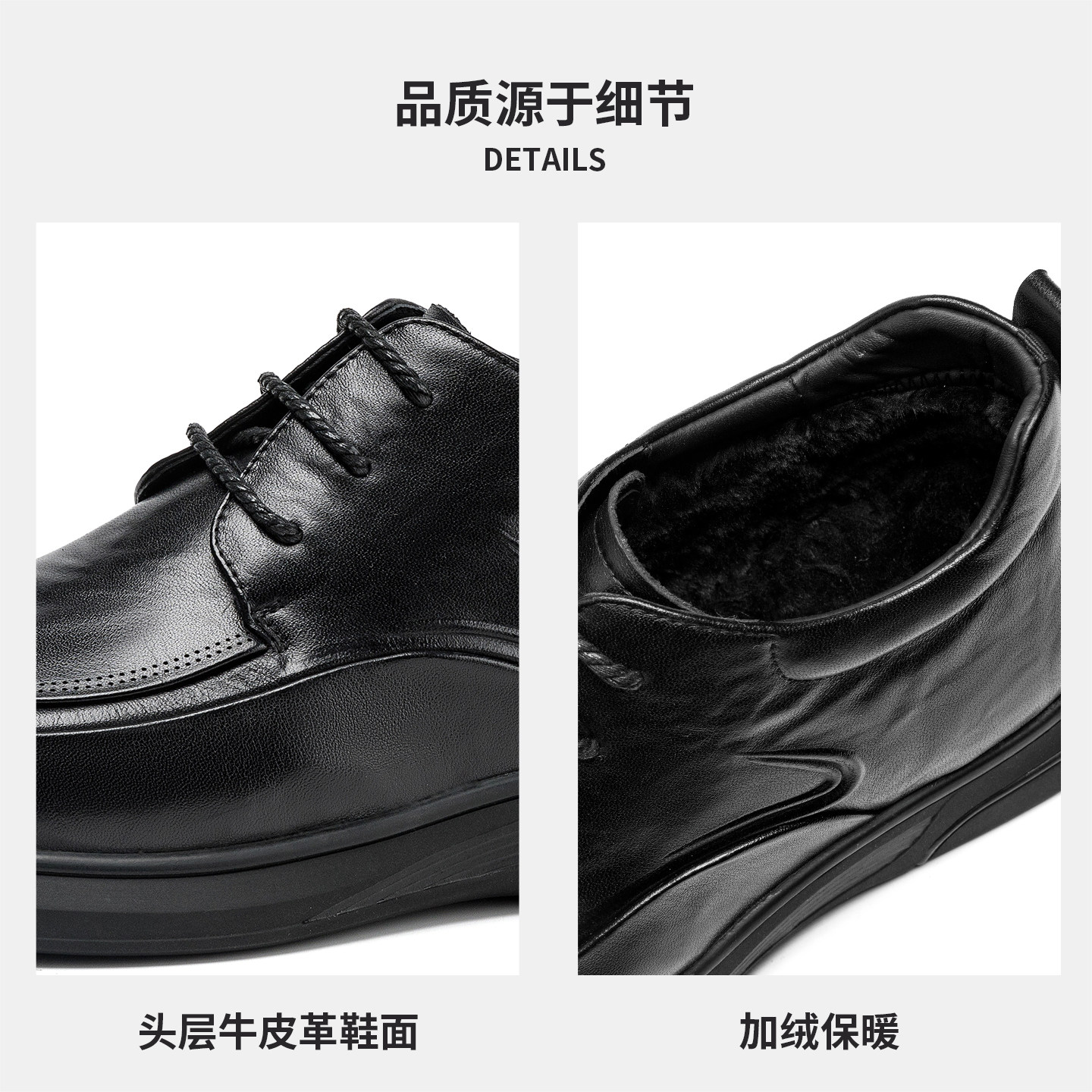 骆驼2025冬季舒适休闲加绒皮鞋男结婚新郎正装商务真皮增高德比鞋