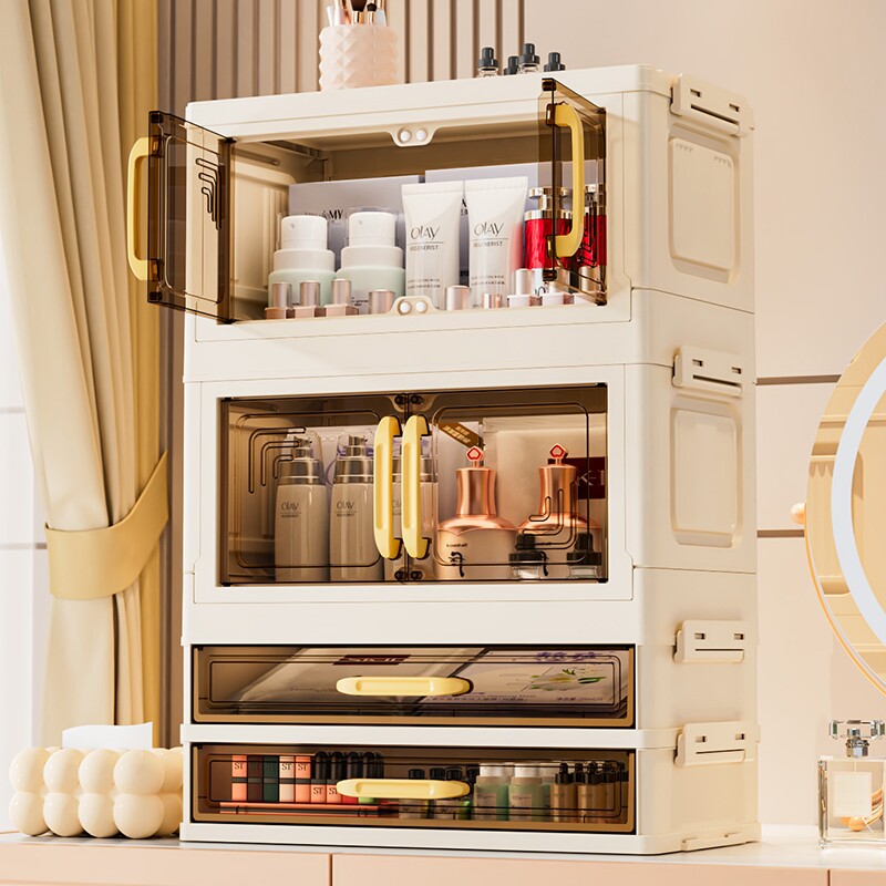 化妆品桌面收纳盒抽屉式梳妆台护肤品置物架大容量储物防尘化妆箱