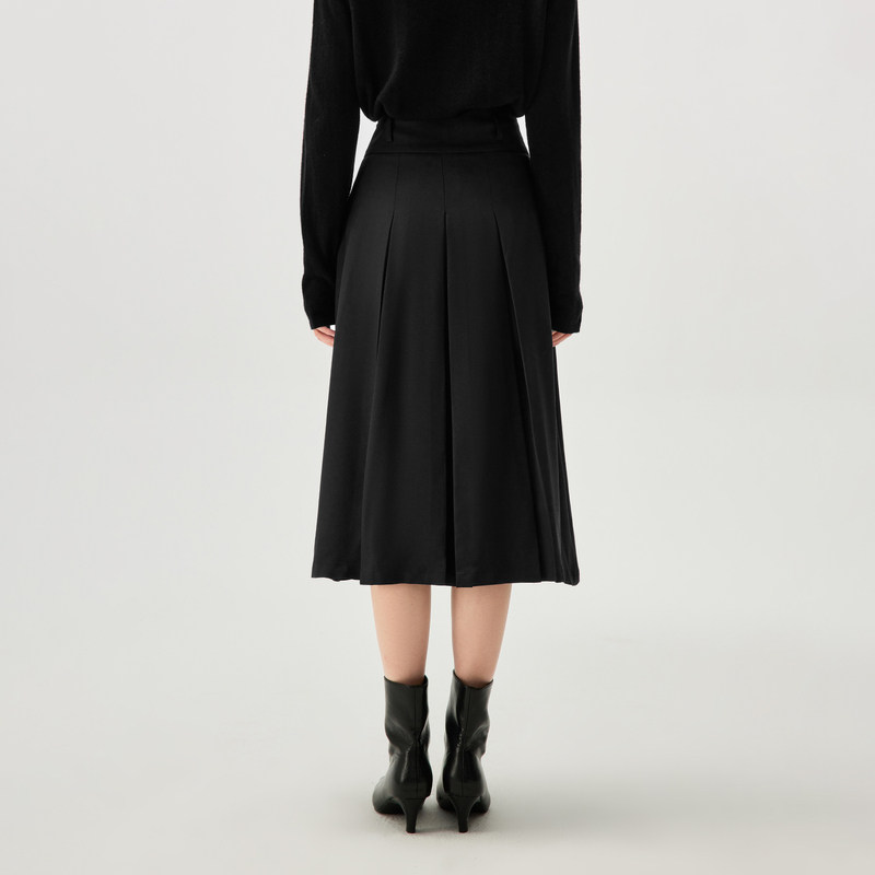 HLA/海澜之家商务休闲黑色半身长裙秋季新款显瘦A字百褶裙子女装