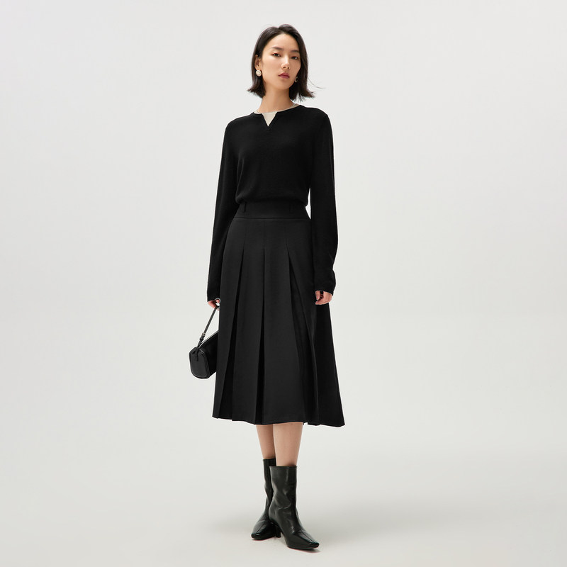 LIMONN |秋冬多颜色经典高腰显腿长A字百褶半身裙长裙