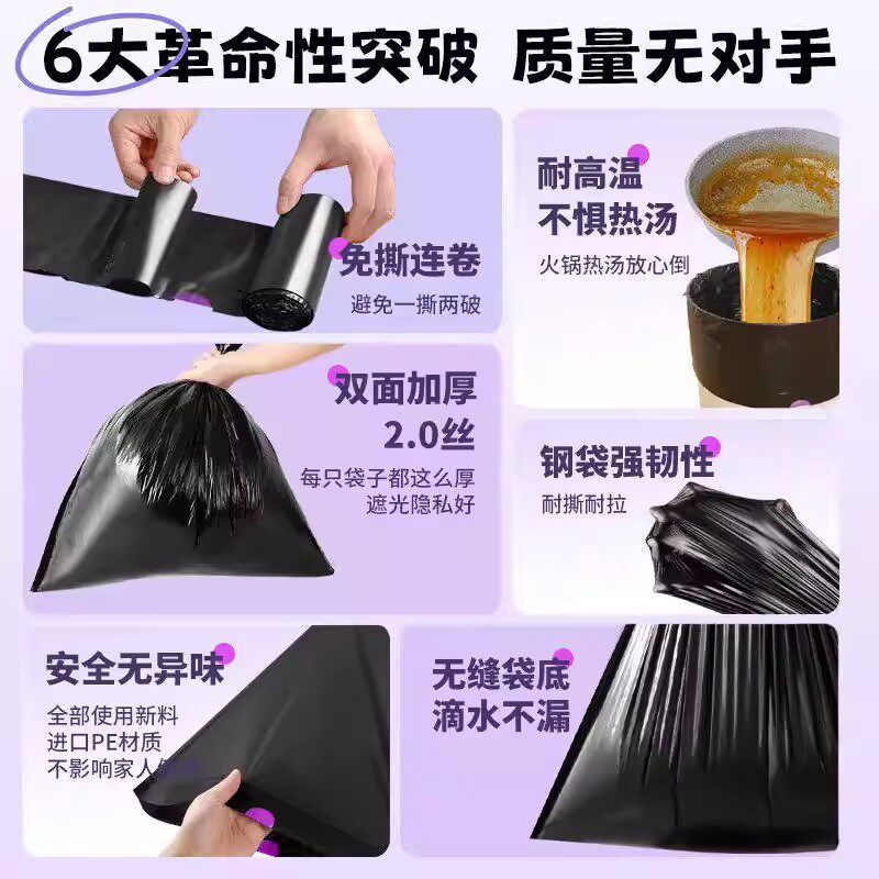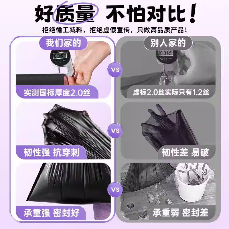 垃圾袋家用加厚手提式抽绳免撕自动厨房黑色塑料袋特厚大号实惠装