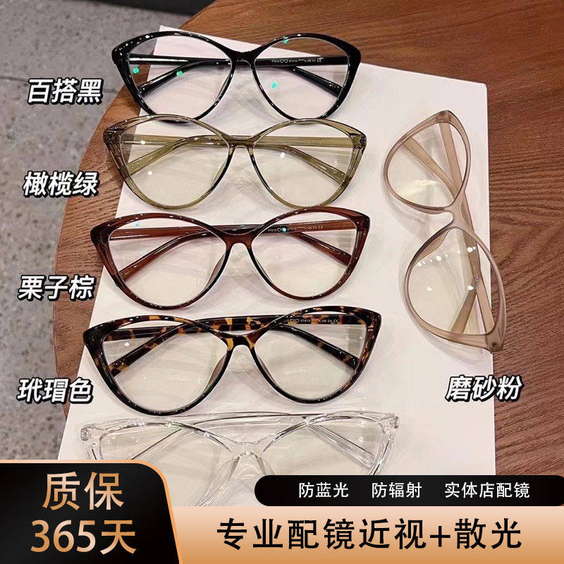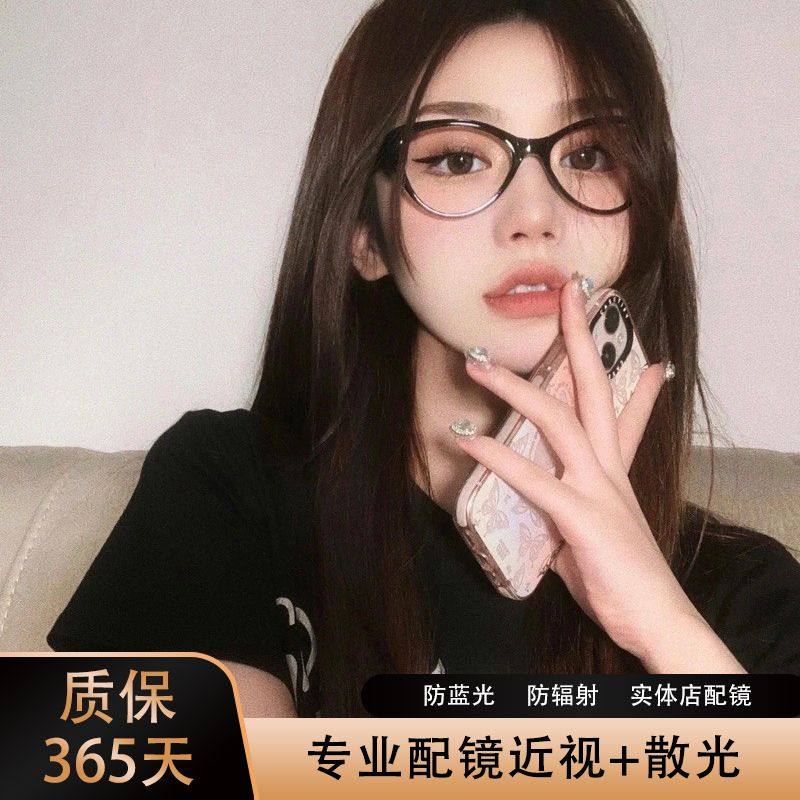 黑框素颜神器镜框猫眼方显瘦可配近视早八眼镜女无镜片散光玳瑁