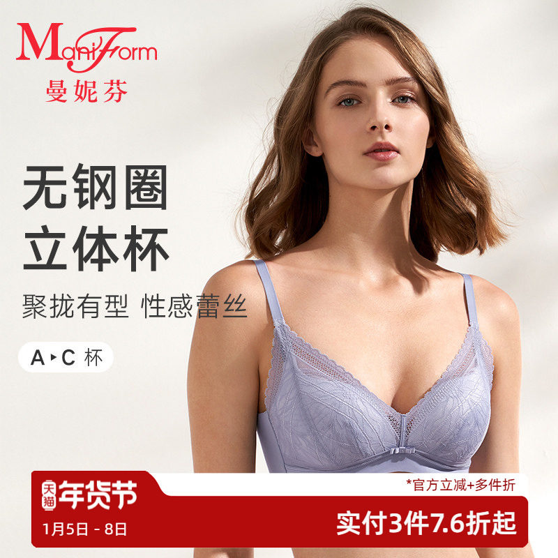 曼妮芬舒适聚拢无钢圈蕾丝文胸女士软支撑内衣